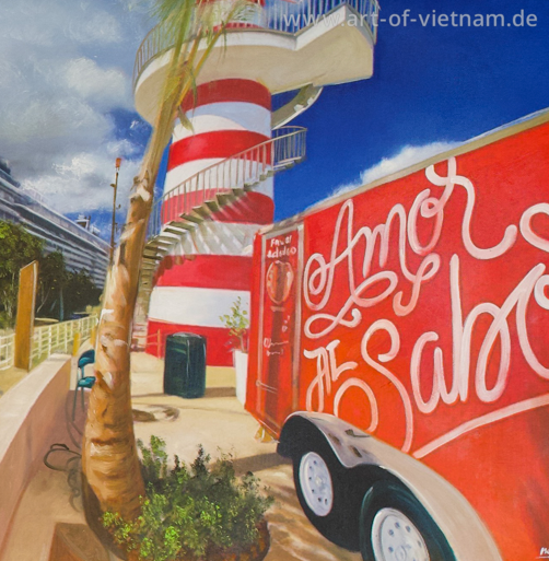 ... präsentieren wir Ihnen eine kleine Auswahl unserer handgemalten Gemälde. Stöbern Sie auf den obigen Menus detailliert nach einzelnen Motiven samt Größen und Preisangaben. Die Fotos der Werke ordnen sich bei jedem Seitenaufruf neu an. Inspirierende Eindrücke, wie die Bilder in Ihren Räumlichkeiten wirken könnten, sind dort ebenfalls hinterlegt.