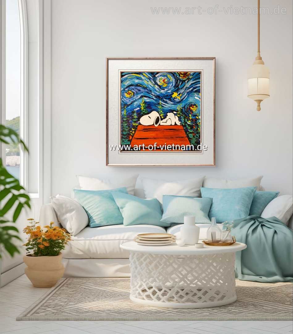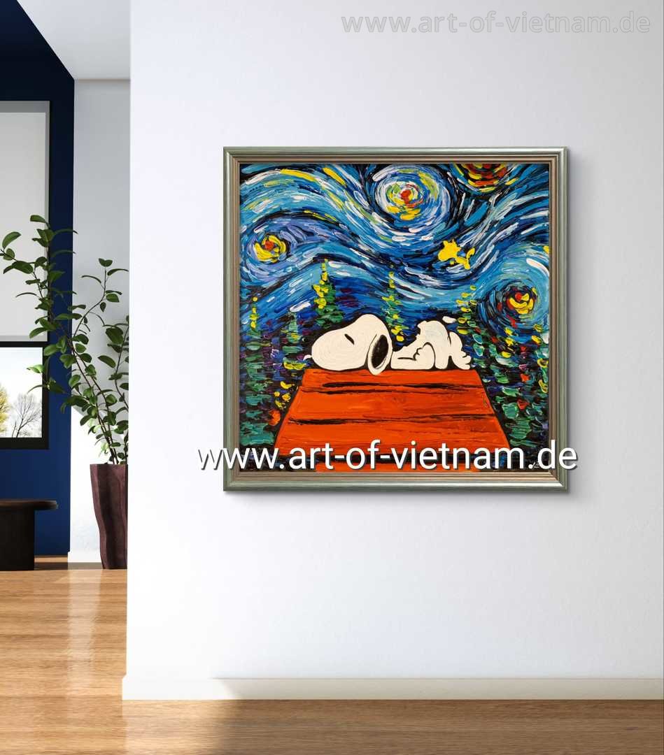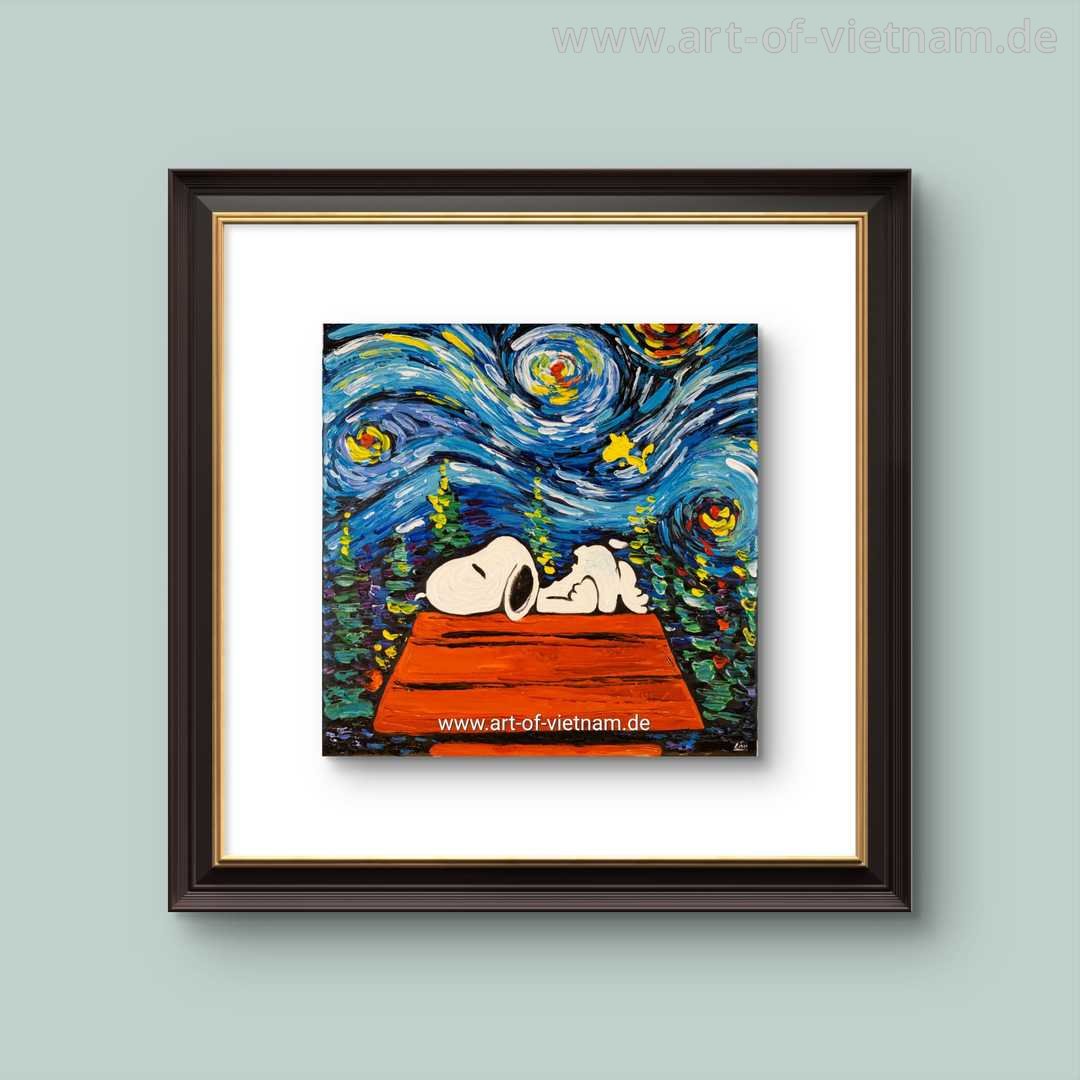 Artikel D0035 - Sternennacht mit Snoopy | Druck auf Leinwand