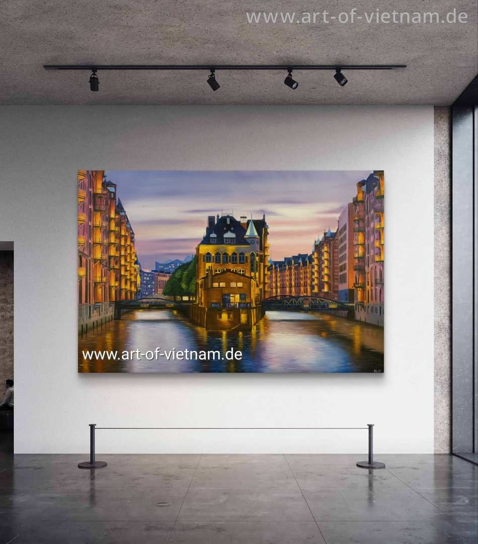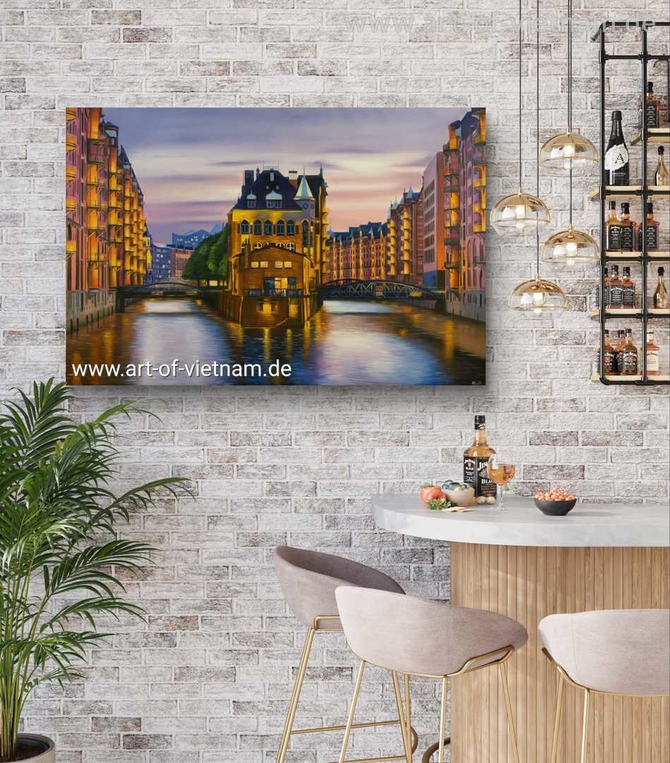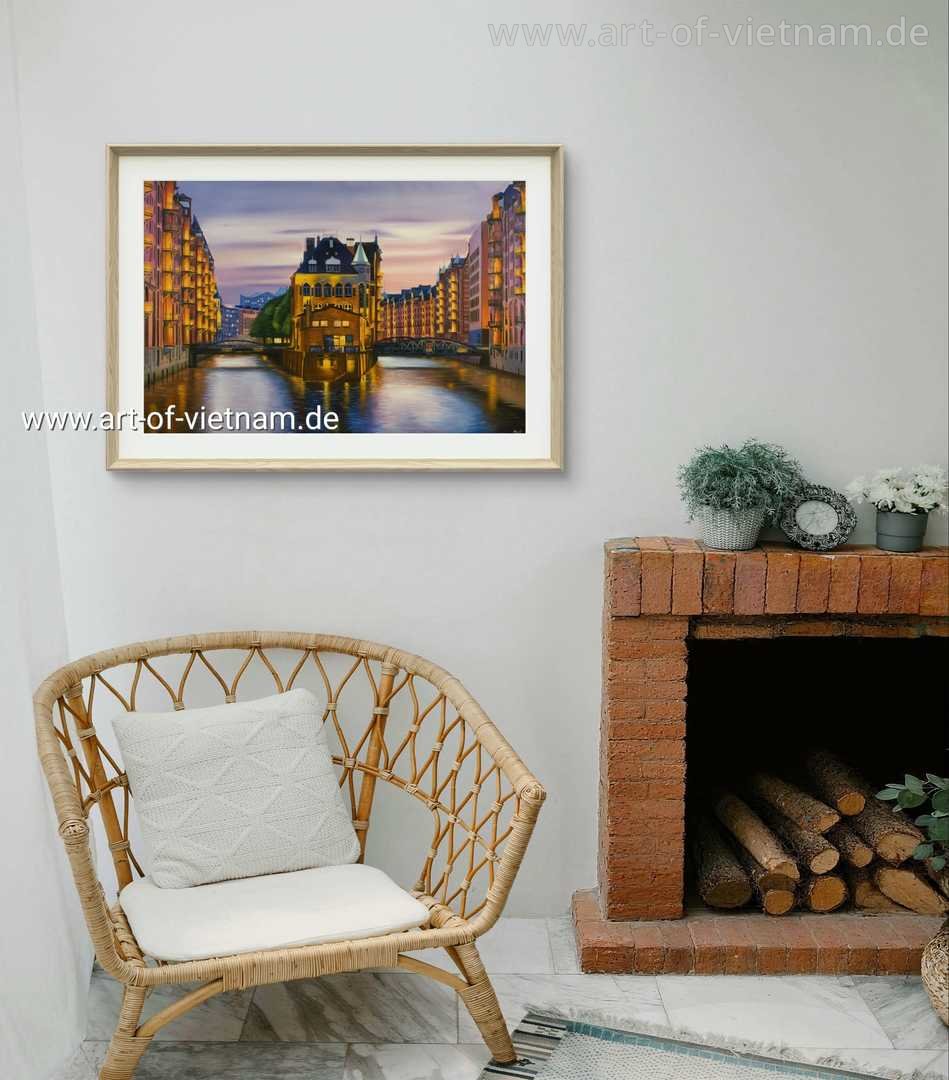 Artikel D0602 - Goldene Stunde am Hamburger Wasserschloss | Druck auf Leinwand