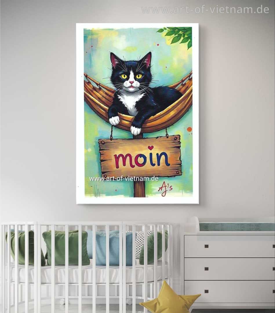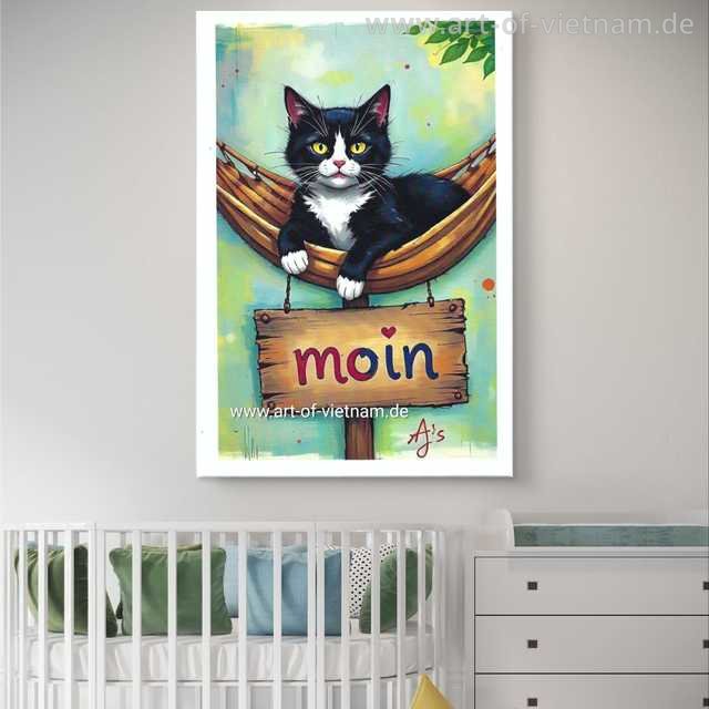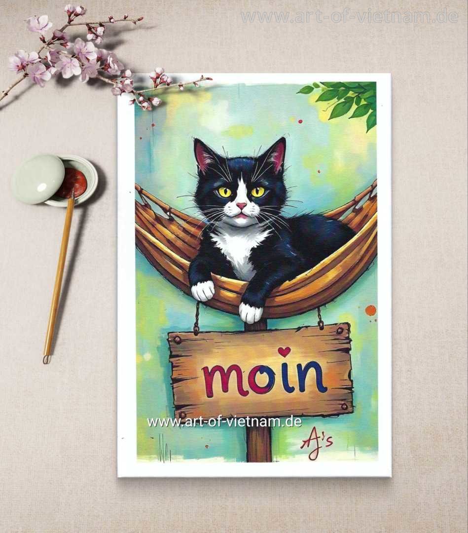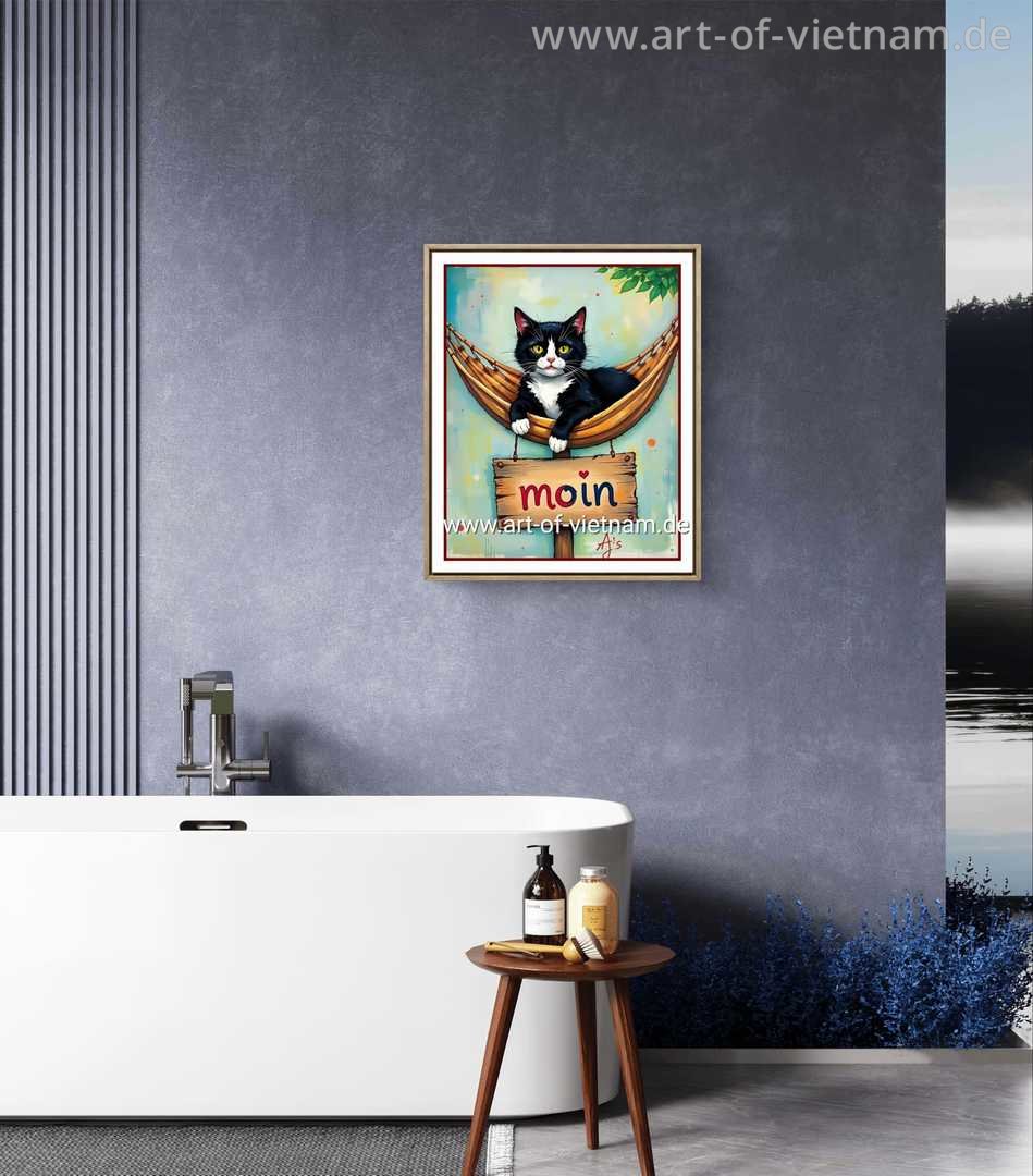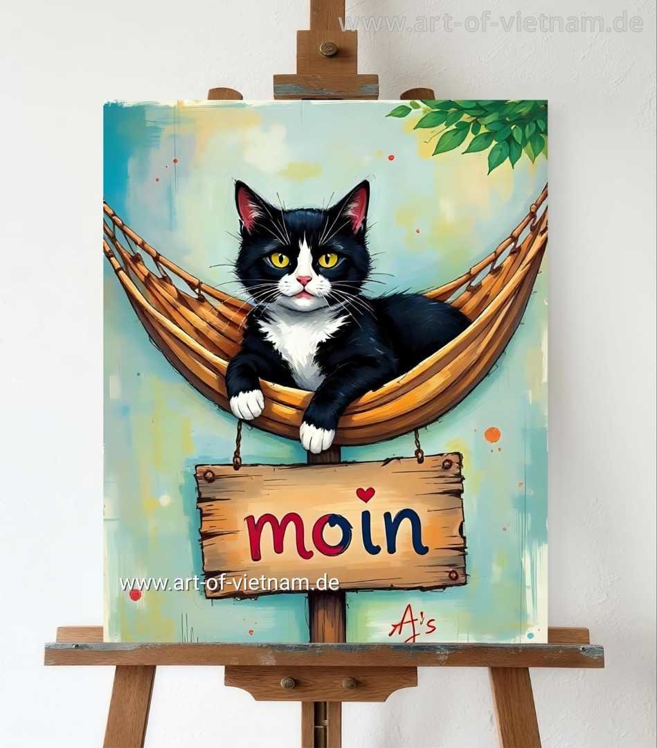 Artikel D0042 - Strandkater in der Hängematte | Druck auf Leinwand