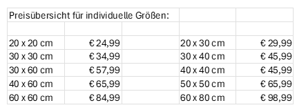 Wir haben weit über 100 Motive im Angebot. Leider konnten wir bislang nur einen geringen Teil hier auf unserer Webseite einpflegen. Es werden regelmäßig mehr. Versprochen.