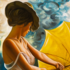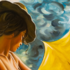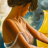 VERKAUFT - Symbiose der Stille - Dieses fesselnde Porträt zelebriert die tiefe Verbindung zwischen Mensch und Natur. Das kunstvoll geflochtene, silberne Haar der Frau verschmilzt mit leuchtenden roten Beeren und grünen Akzenten, während eine detailreich ausgearbeitete Meise auf ihrer Schulter ruht. Der dunkle, strukturierte Hintergrund verleiht der Szene eine geheimnisvolle Tiefe und lässt die Farben des Vogels und der Lippen lebendig hervorstechen. Ein ausdrucksstarkes Werk voll Anmut und natürlicher Harmonie.