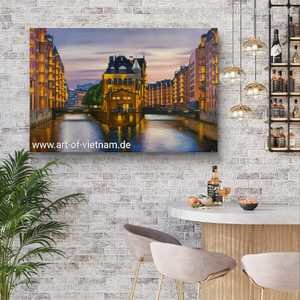 Artikel D0602 - Goldene Stunde am Hamburger Wasserschloss | Druck auf Leinwand