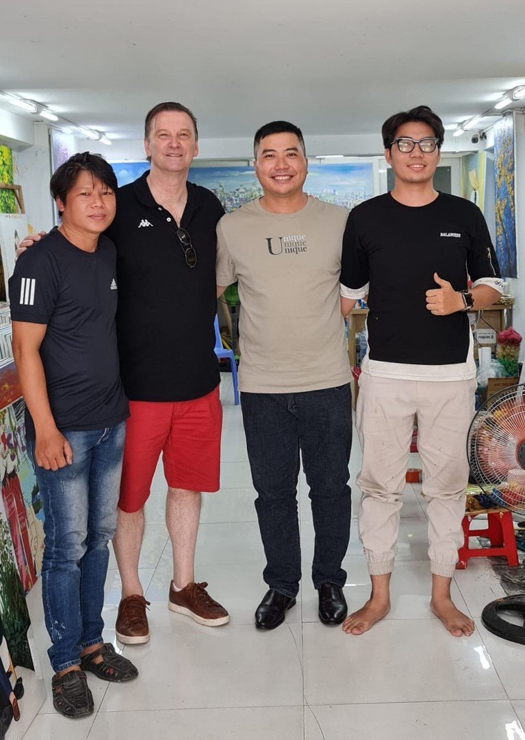 Huan zog im Jahr 2000 nach Saigon und hat weit mehr als 20 Jahre Erfahrung in der Kunstindustrie.